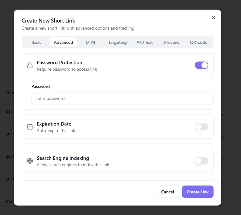Creating a short link on 9to.in is simple, yet powerful. You can not only shorten URLs but also track performance, apply targeting rules, run A/B tests, and generate QR codesβall from one place.