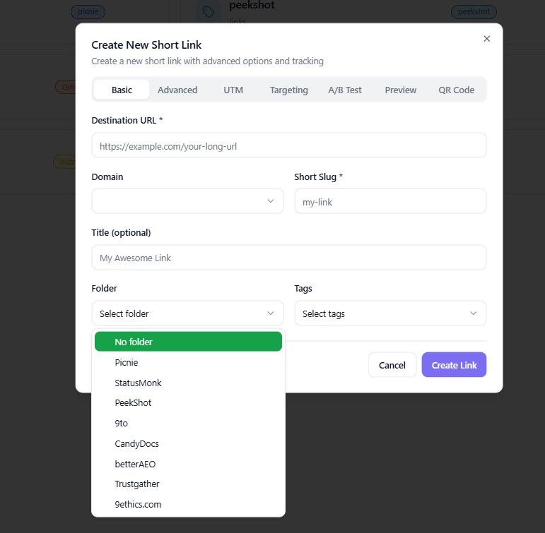 As your number of links grows, managing them efficiently becomes crucial. With 9to.in, you can organize your links using folders and tags to keep everything structured, searchable, and easy to manage.