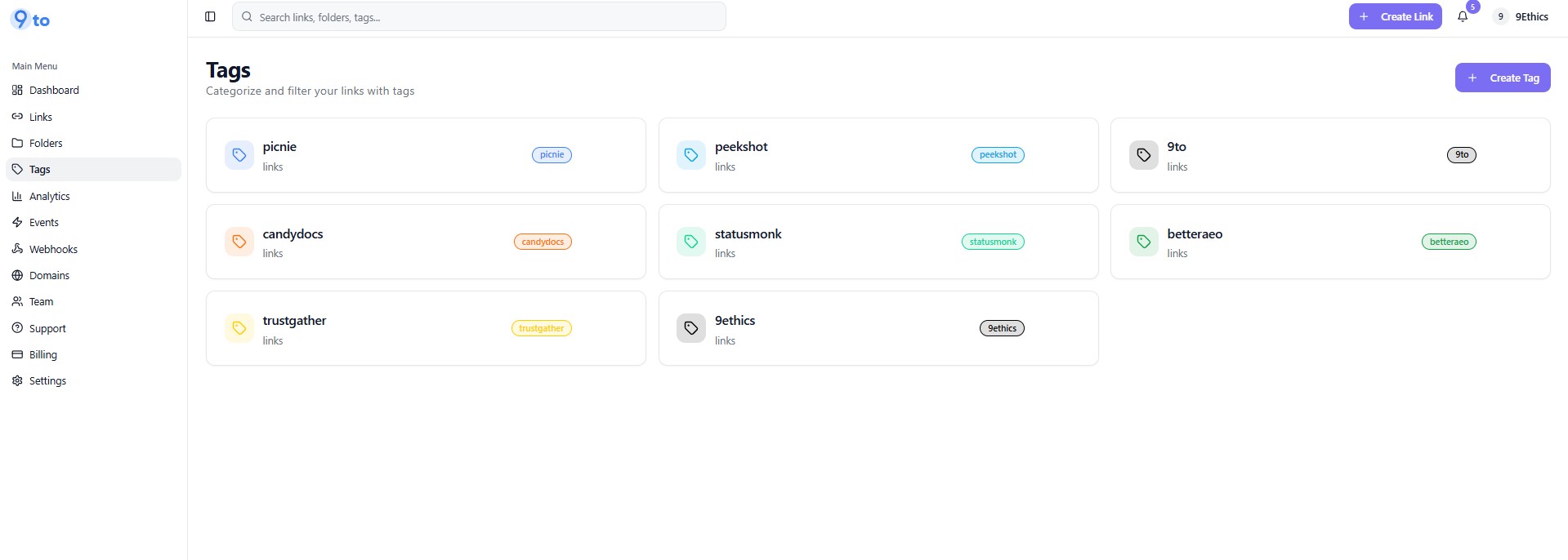 Using folders and tags in 9to.in helps you stay organized, save time, and manage links efficiently. As your campaigns grow, this structure becomes essential for better tracking and performance analysis.