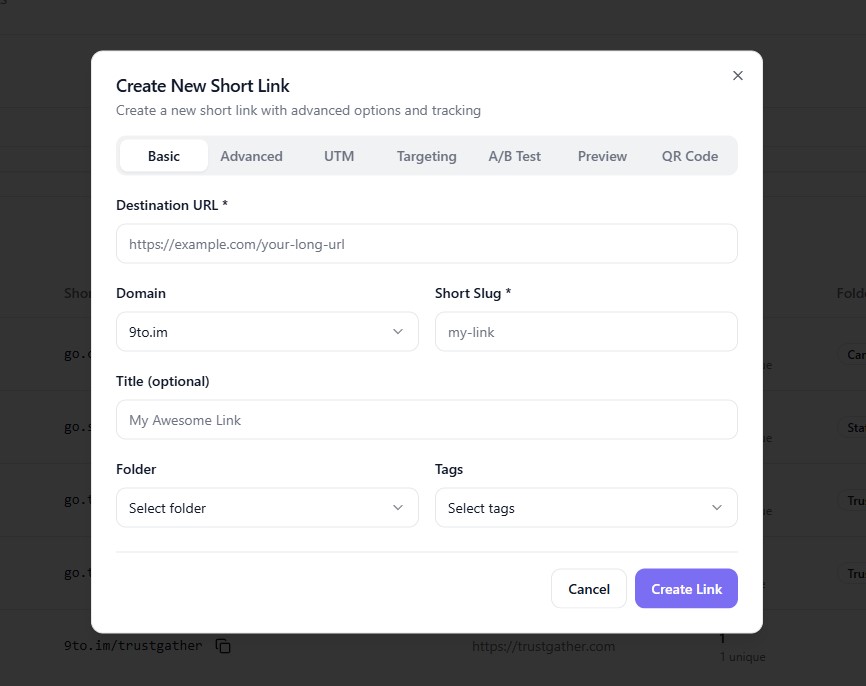 ⚙️ Step 2: Enter Basic Link Details