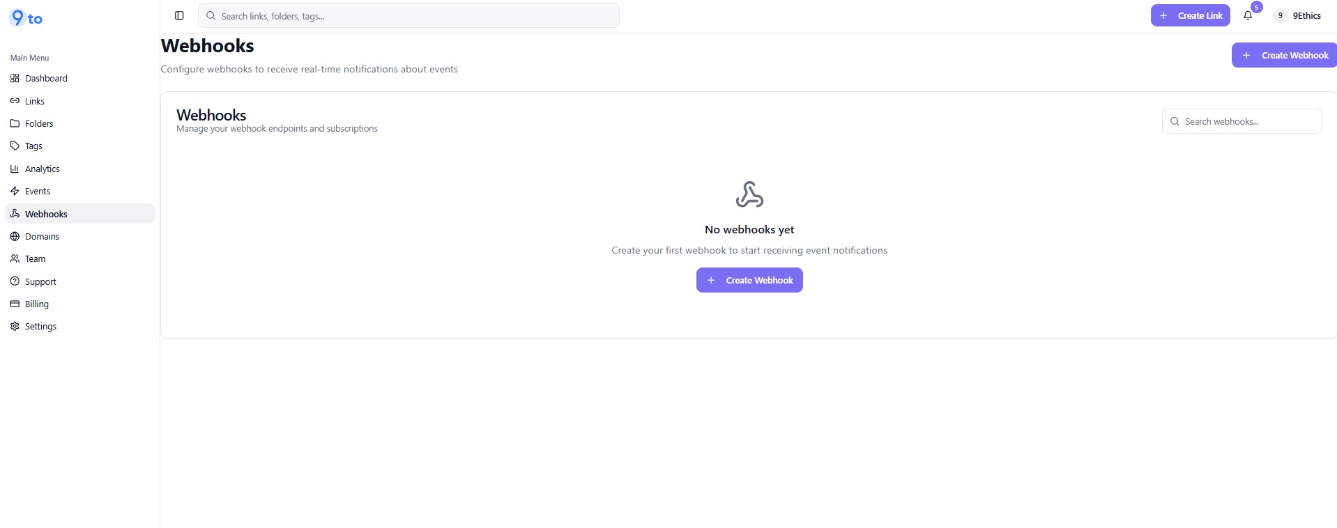 Webhooks allow you to receive real-time notifications whenever an event happens in your links. With 9to.in, you can send data instantly to your systems, CRMs, or apps like Slack, Zapier, or custom APIs.