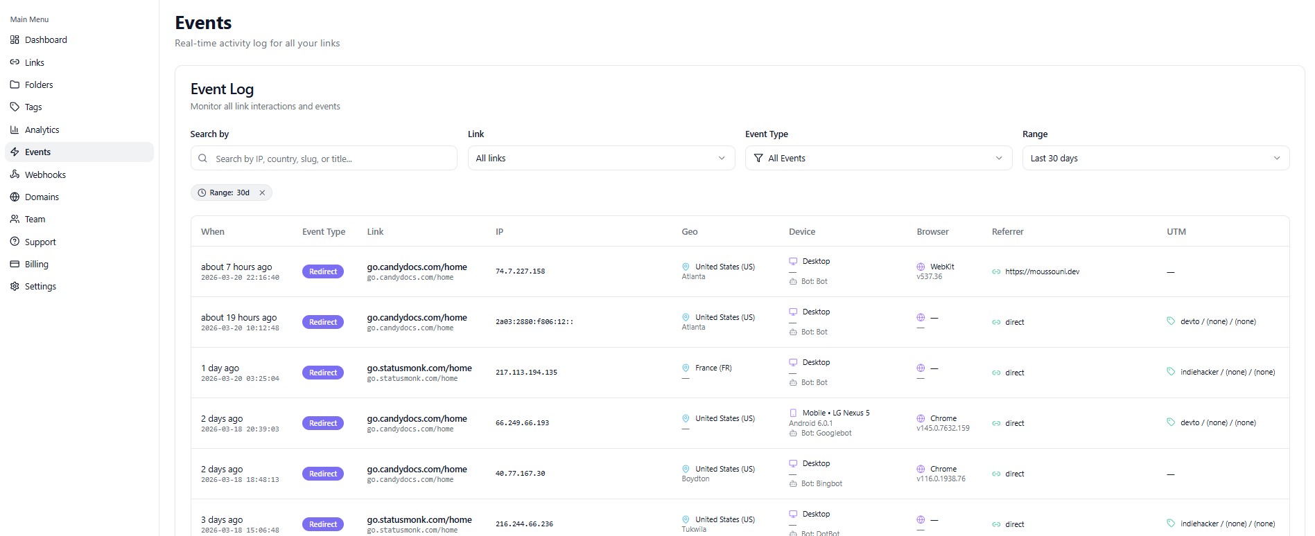 See how users access your links: